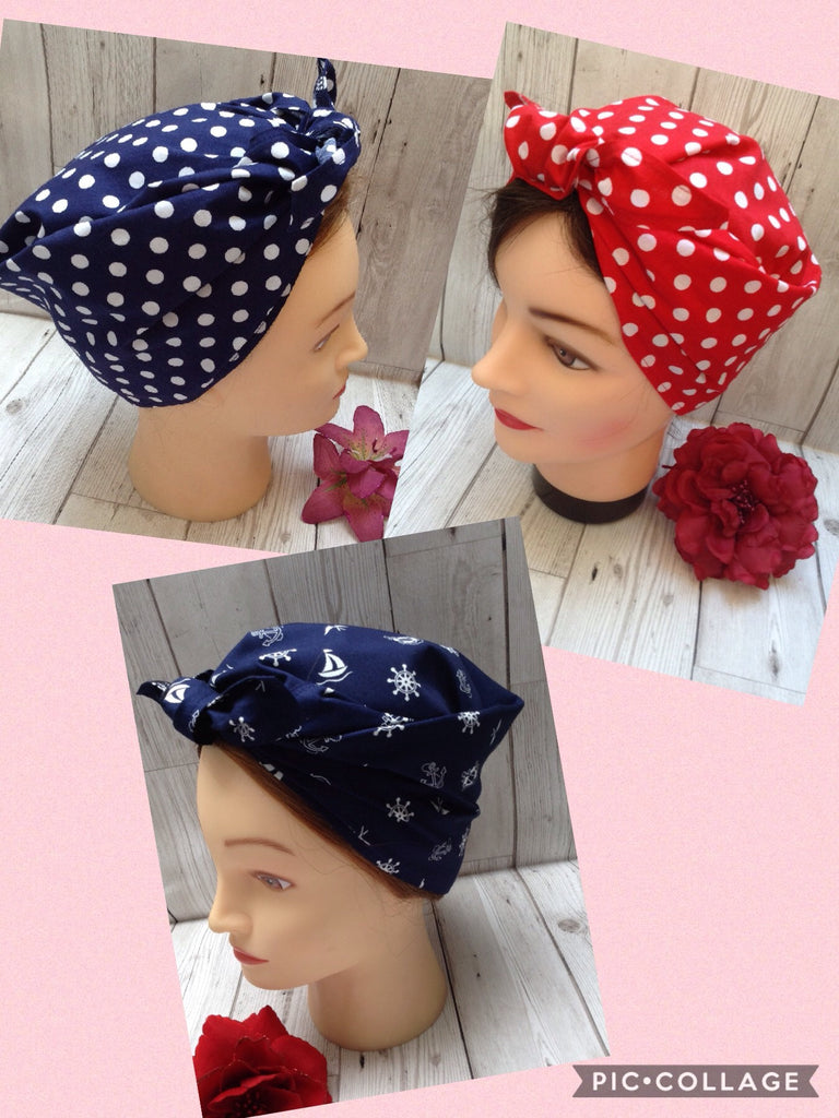In addition to red, I stock a variety of colours of this popular headscarf, pop into my shop and have a look!